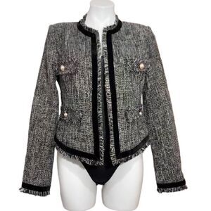 LUXY USA Black Tweed Collarless Fringe Trim Blazer New Size Medium