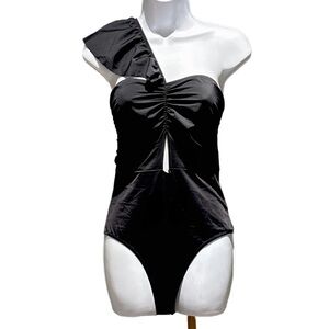 LUZ. | One-Shoulder Ruffle Black Swimsuit