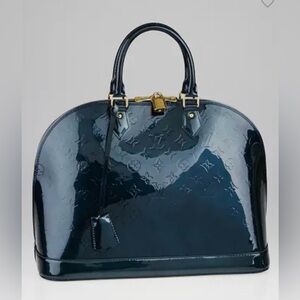 LV Alma GM Bleu Nuit Vernis Patent Leather Top Handle Bag - Collectible💎