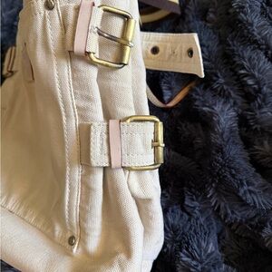 Please see all photos this is a very old bag and there is discoloration but honestly it just adds to the look