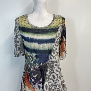 LV Collection Top Tunic size Small Navy Artsy Sheer Mountains Peasant Boutique