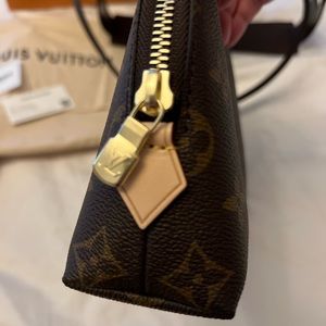 Brand new GM cosmetic pouch with custom encasement. Custom encasement allows you to turn this pouch into a crossbody bag. Comes with dust bag and box