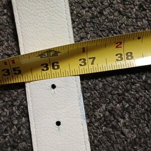 Elegant Louis Vuitton belt with iconic Damier pattern. Features a striking gold LV buckle. have no idea where this came from, so it's sold as is with no authenticity. cute grey n white belt.