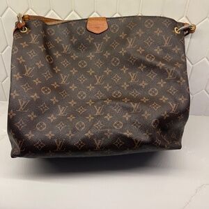 Good used condition. Great purse! I just don’t use it like I should. This purse was originally purchased at the LV store and comes with a box.