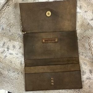Our DISTRESSED Embossed LEATHER COWHIDE is an incredible small sized bag. The inside is distressed leather with interior pockets. It can fit a phone, cash, coins and multiple cards.
