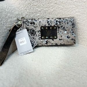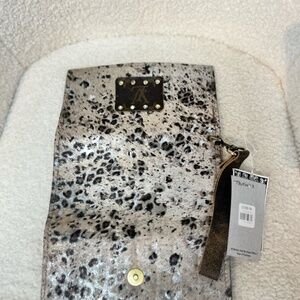 Wear as a baguette bag or wristlet by adjusting the convertible and removable strap
