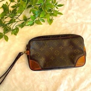 LV LOUIS VUITTON Marly Dragonne PM Monogram Clutch Zipper Vintage Wristlet Bag