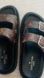 Stylish sandals with iconic monogram design. Features brown straps and black sole.