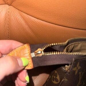 In very good condition overall . There is no leash, and the zipper handle is broken as shown in the pictures. There is no barcode (date code)