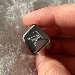 Super rad heavy duty LV Louis Vuitton ring. This ring isn’t stamped inside but it is HEAVY and thick! Very high quality, found and purchased from an estate sale in CA.