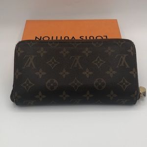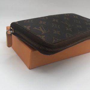 Well loved LV zippy organizer. This piece has wear throughout, reflected in the price. Tarnishing to the gold hardware, warping on the canvas from over stuffing, zipper is beginning to come apart at the corner. Inside just needs some cleaning but overall in Good condition. Still functional.