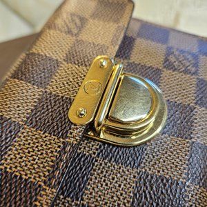 Nothing to disclose. Only used it once or twice for not too long because I bought something else from a different brand that I liked better. Authentic LV damier ebene compact wallet. If you look closely, there is some hairline scratches on the clasp and slight oxidation on the gold hardware on the back of the wallet. Otherwise, really good condition.