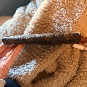 preloved authentic lv pouch. Has some call outs like tarnishing on hardware, staining on inside of pouch, peeling/cracking and the zipper has a tough time opening and closing but it is functional.