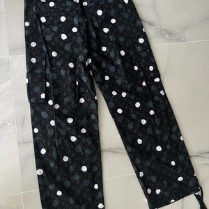These cargo pants from the Louis Vuitton x Yayoi Kusama collection feature an allover jacquard Monogram overlaid with the artist’s iconic dots, printed with a special relief effect evoking her brush strokes. Made from ECONYL® Regenerated Nylon, these casual pants with cargo pockets on the legs and adjustable drawstring hems can be paired with the Monogram Painted Dots Blouson for a standout total look.