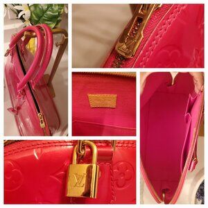 Turn heads with this gorgeous Louis Vuitton Rose Pop Vernis Alma Bag and Matching Wallet! This vibrant pink patent leather set is a must-have for LV lovers who appreciate bold elegance.