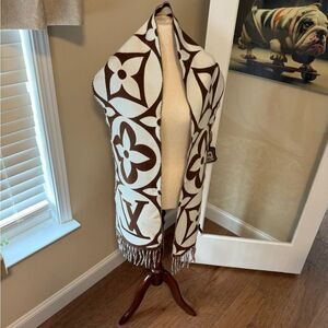LV Brown and White Patterned Shawl/ Scarf with Fringe