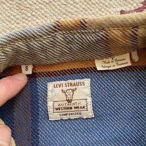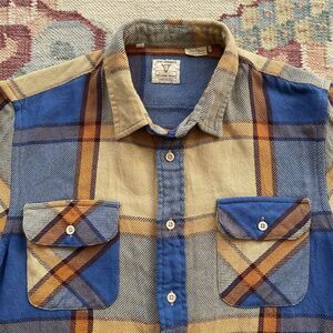LVC Short Horn Flannel Shirt Levi's Vintage Clothing Blue Plaid Small Cotton