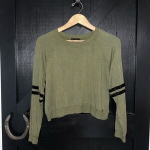 LVHR Revolve Sabina Crop Soft Micro Modal French Terry Raglan Sweatshirt Olive S