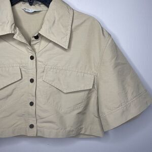 LVIR Crop Top Womens Large L Khaki Tan Half Sleeve Shirt Collared Button Front