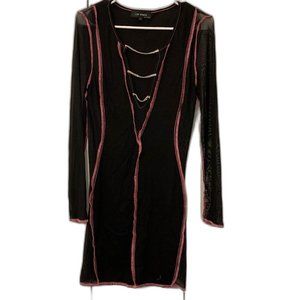 L'VOW Sheer Mesh Patchwork Bodycon Dress Black / Pink Women Size Large NWOT