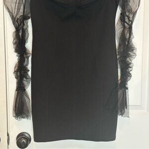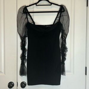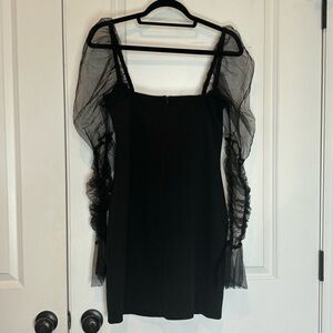 L'VOW Women Black Sheer Puff Long Sleeve Body Con Mini Dress XXL