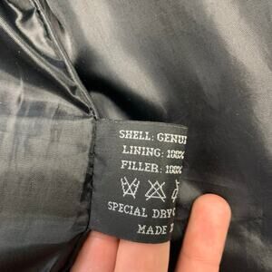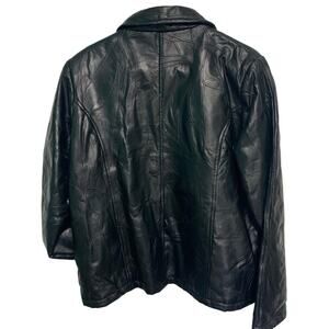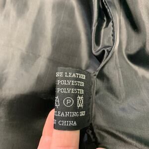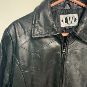 Jacket is in good preowned condition. Soft genuine leather exterior with a unique stitched pattern. Full zip and two front side pockets.