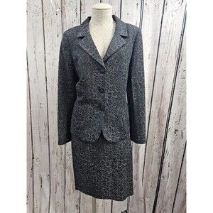 LW Women's 10/12 Dana Buchman Original Gray Leopard Print Skirt Suit 2 Pc Set