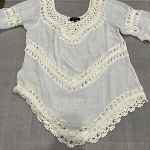 [L/XL]Papillon Blanc 3/4 Sleeve Crochet Blouse