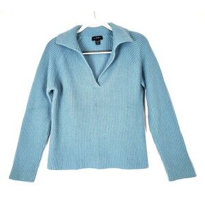 LXRI 100% Cashmere Sweater Womens Large V Neck Collar Light Blue