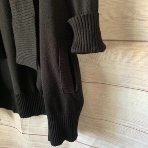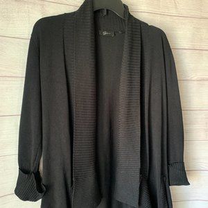 LYN Black Cardigan with Ribbed Open Front Cuffed Sleeves Pockets Size M