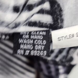 LYNN RITCHIE SILVER Black & White Abstract Patterned Blouse Button Up Size Small