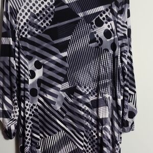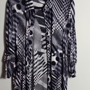 Stylish blouse with a black and white geometric pattern. Perfect for any occasion.