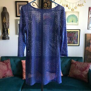 LYNN RITCHIE Silver size M Royal Blue Stretch Sheer Mesh Net Hi-Lo Top