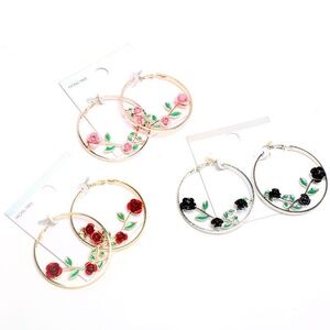 **LYRA* Gold x Pink Rose Fashion Hoop Earrings