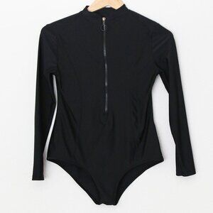 LYRA Swim Sofia One Piece Long Sleeve Black Swimsuit S Half Zip UPF 50+ Modest