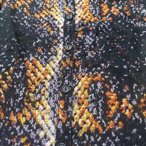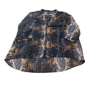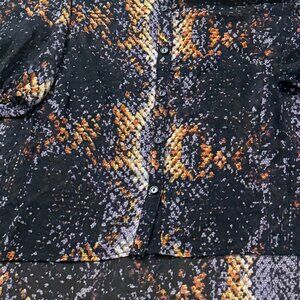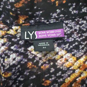LYS blouse 3X Button Down Sheer Black Printed Blouse