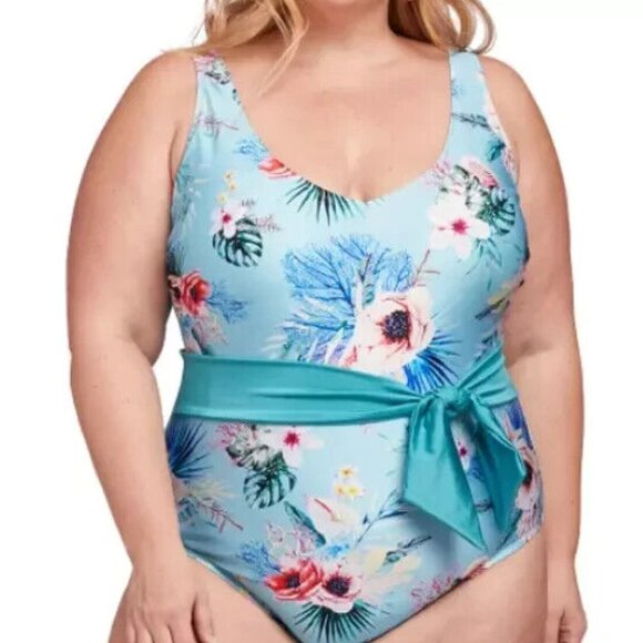 LYSA Women's Plus Size 2X Blue Floral Halter UPF 50+ One Piece Swimsuit NWT