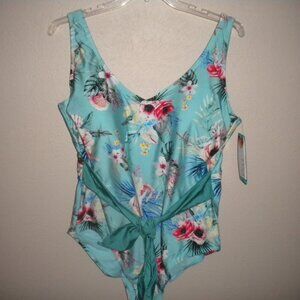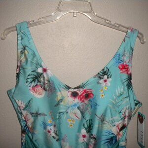 LYSA Women's Plus Size 2X Blue Floral Halter UPF 50+ One Piece Swimsuit NWT.