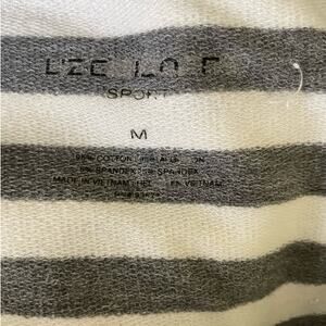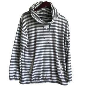 LZC Sportswear Women Sweatshirt M Gray Striped Tunic Funnel Neck Coastal Preppy