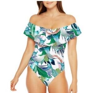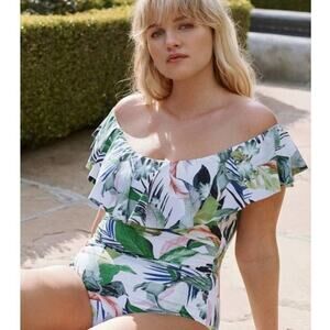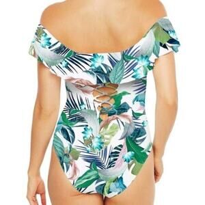 La BLANCA Off The Shoulder One-piece Tropical Lace Up Back Swimsuit plus size 16