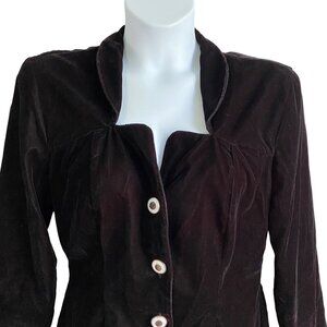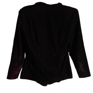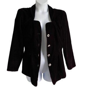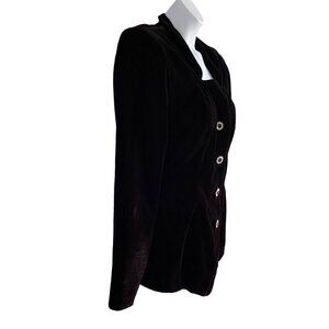 Elegant and stylish, this black velvet jacket features a flattering cut and button-down front, perfect for adding a touch of sophistication to your wardrobe.
