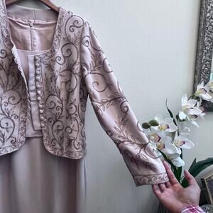 La Belle Fashion 2 Piece Cream Dress & Jacket Mother of Bride Formal Beaded Coat