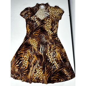La Belle Vintage Animal Print Surplus Tulip Sleeve Dress **NO BELT Size L
