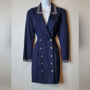 La Belle Vintage Navy Double-Breasted Nautical Suit Jacket Sheath Dress Size 7