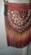 La Bellum by Hillary Scott crossbody bag made of 100% cotton. Made in India, this purse features beaded embellishments in earthy tones of brown, gold, and burgundy, arranged in a mandala-inspired pattern. The front flap features sequins, glass beads, and metallic details. The bottom is finished with long ombré fringe in golden brown and burgundy. Designed with a wide adjustable 26" strap, it can be worn crossbody or over the shoulder.