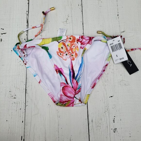 La Blanc Women's Tropical Floral Hipster Full Coverage Tie Bikini Bottoms Sz 6