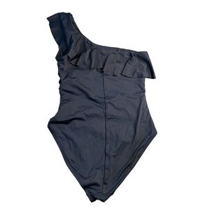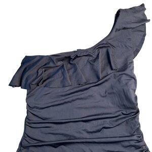 La Blanca BLACK Goddess Ruched Ruffle One Shoulder One Piece Swimsuit, US 6