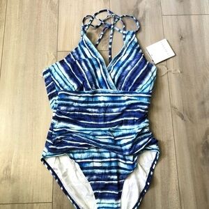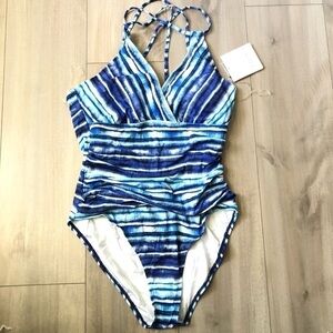 La Blanca BLUE Serene Stripe Tummy-Control One-Piece Swimsuit 14