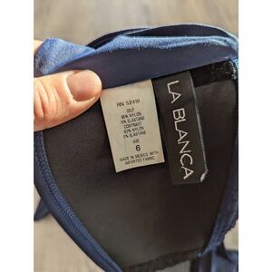 La Blanca Bikini Top women's size 6 navy blue twist front beachy vacation‎