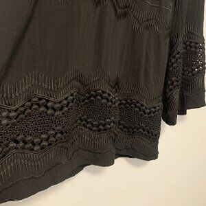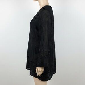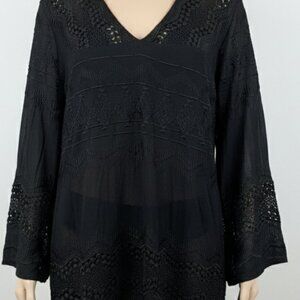 La Blanca Black Crochet Embroidered V-Neck Bell Sleeve Swim Cover-Up Tunic XL
